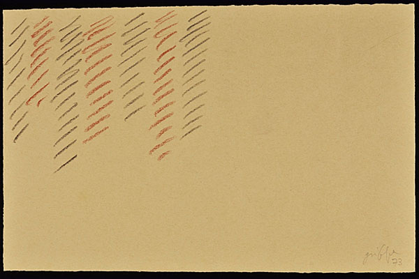 "En la repetición de los signos (…) se encuentran el ritmo, primer instrumento para el conocimiento." "La repetición de los signos que son similares y jamás idénticos por la condición natural de la mano, se presenta como metáfora del continuo devenir de la naturaleza." 2 Giorgio Griffa.