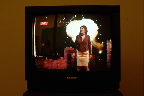 La información se ha convertido en una mercancía sometida a las leyes de la oferta y la demanda; priman claramente los criterios de mercado sobre los de carácter cívico o ético. Se llevan a cabo costosas investigaciones tele-dirigidas a optimizar la eficacia de una comunicación planificada. Centrándose en la profecía baudrillardiana acerca de que vivimos en un mundo en el que la más elevada función del signo es hacer desaparecer la realidad y enmascarar al mismo tiempo esa desaparición, Fernando Arrocha y Ángela Cuadra presentan ON AIR, un proyecto producido por el CAAM y realizado específicamente para esta exposición, que pone de relevancia la falsedad de la imagen mediática y la promiscuidad de las imágenes explotadas en el ámbito televisivo utilizando una de las formas más habituales de persuasión de este medio: el directo, la imagen "en tiempo real". El espectador tiene la opción de inspeccionar personalmente el lugar de los hechos para constatar que la información retransmitida en el televisor no es más que un montaje, o bien sentarse en un sofá a contemplar, desde el aséptico entorno doméstico, la escena hecha signo.