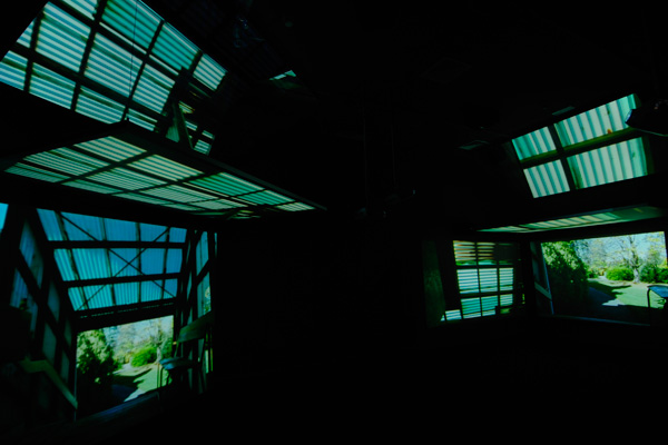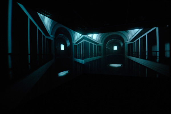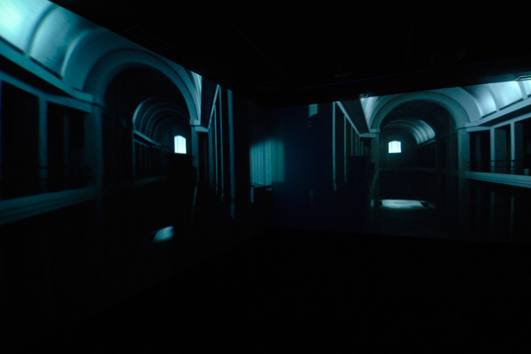 A través de paredes es una exposición integrada por tres instalaciones audiovisuales que exploran uno de los elementos que comparten el cine y la arquitectura: el recorrido. En este sentido tanto cine como arquitectura se desarrollan en el movimiento y ambas son disciplinas que discurren, que fluyen, y en ese movimiento generan en el espectador emociones y estados psicológicos.